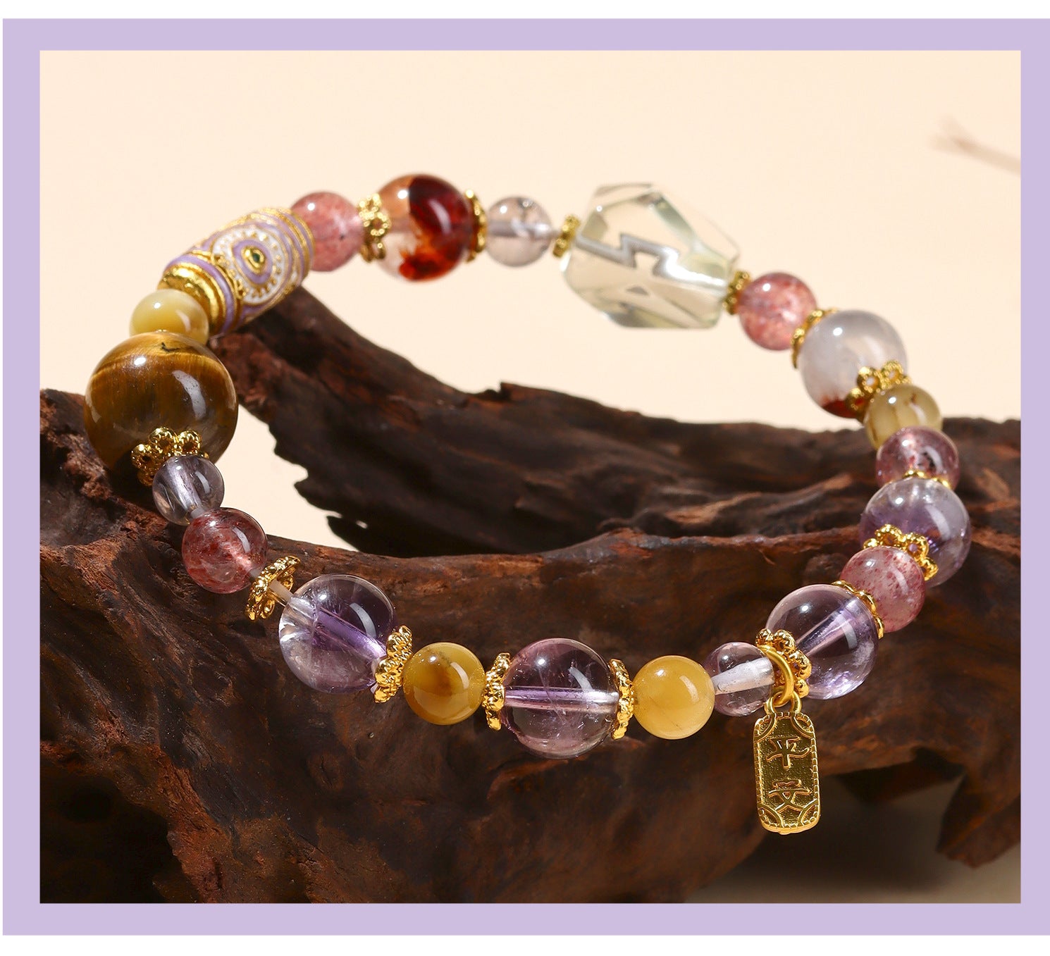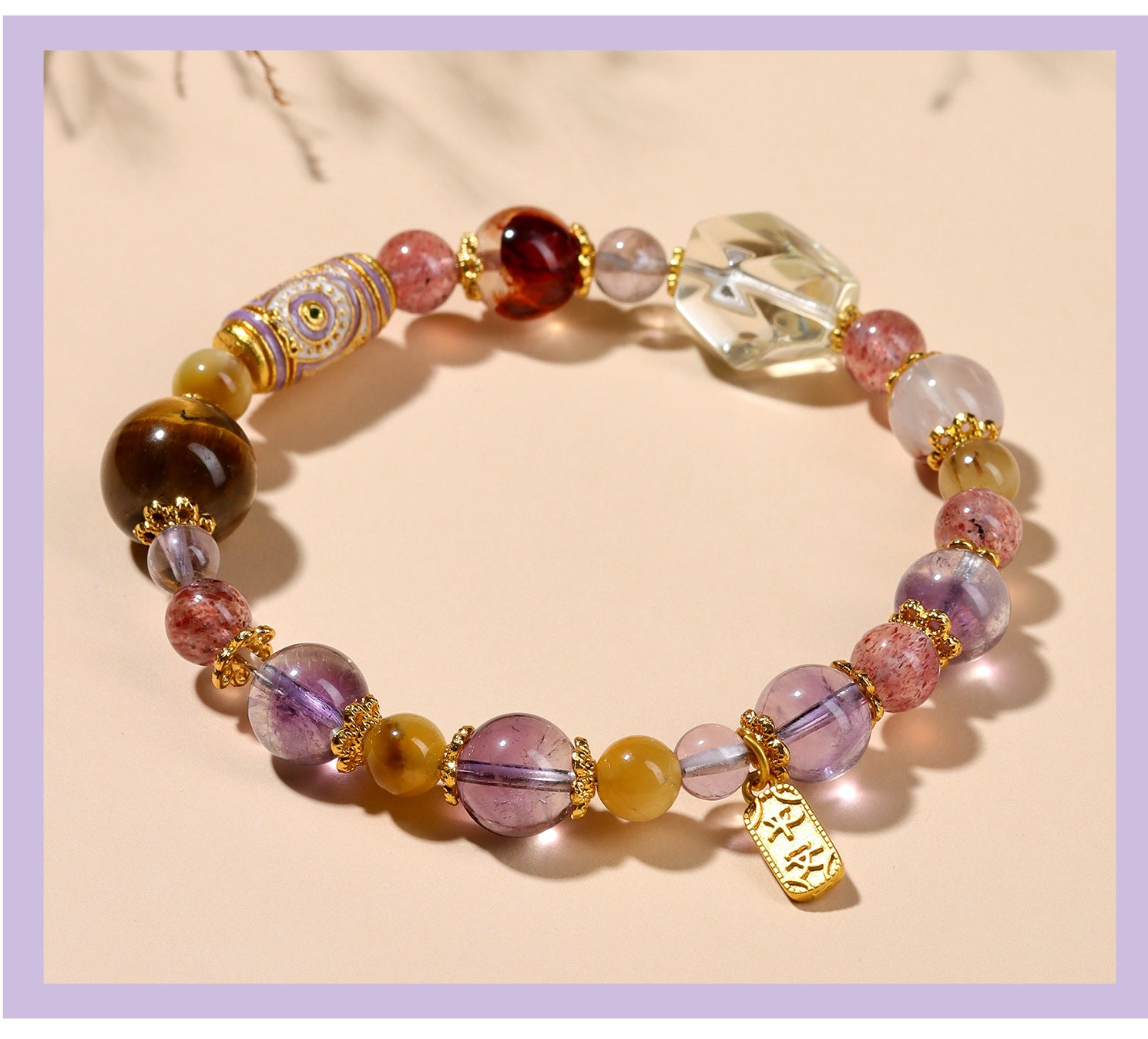 "harmony between yin and yang,"and this piece masterfully balances elements: the fiery purple crystals represent active yang, while the cooler gemstones introduce calming yin. Wearing it helps stabilize one's aura, fostering inner peace and outward prosperity. Each stone is carefully selected to echo the natural order, making it a tool for spiritual refinement.