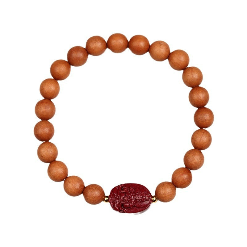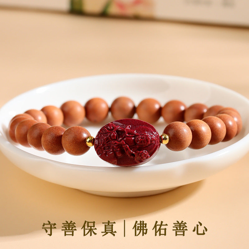Each bead, meticulously crafted, tells a story of cultural heritage—the peach wood representing longevity and the cinnabar symbolizing eternal vitality. Together, they form a bridge between the earthly and spiritual realms. By wearing this bracelet, you not only adorn yourself with beauty but also invite the wisdom of sages, fostering a life of protection, prosperity, and inner tranquility.