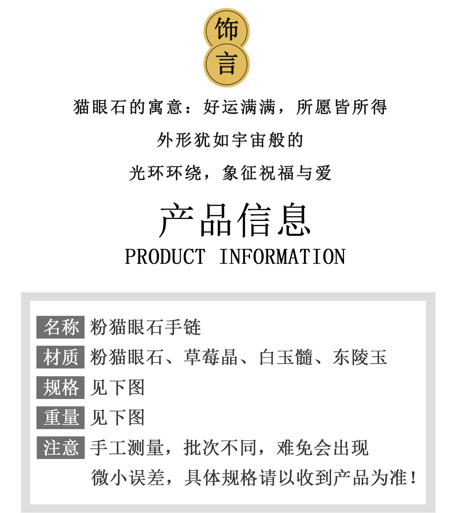 Featuring shimmering pink cat's eye stones that symbolize affection and safeguard against negativity, perfect for daily spiritual wear.