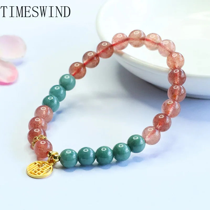 每颗7mm天然粉草莓水晶,色泽温润如初晨花瓣,象征柔情与疗愈,手工穿制保持珠体完整与能量连贯。