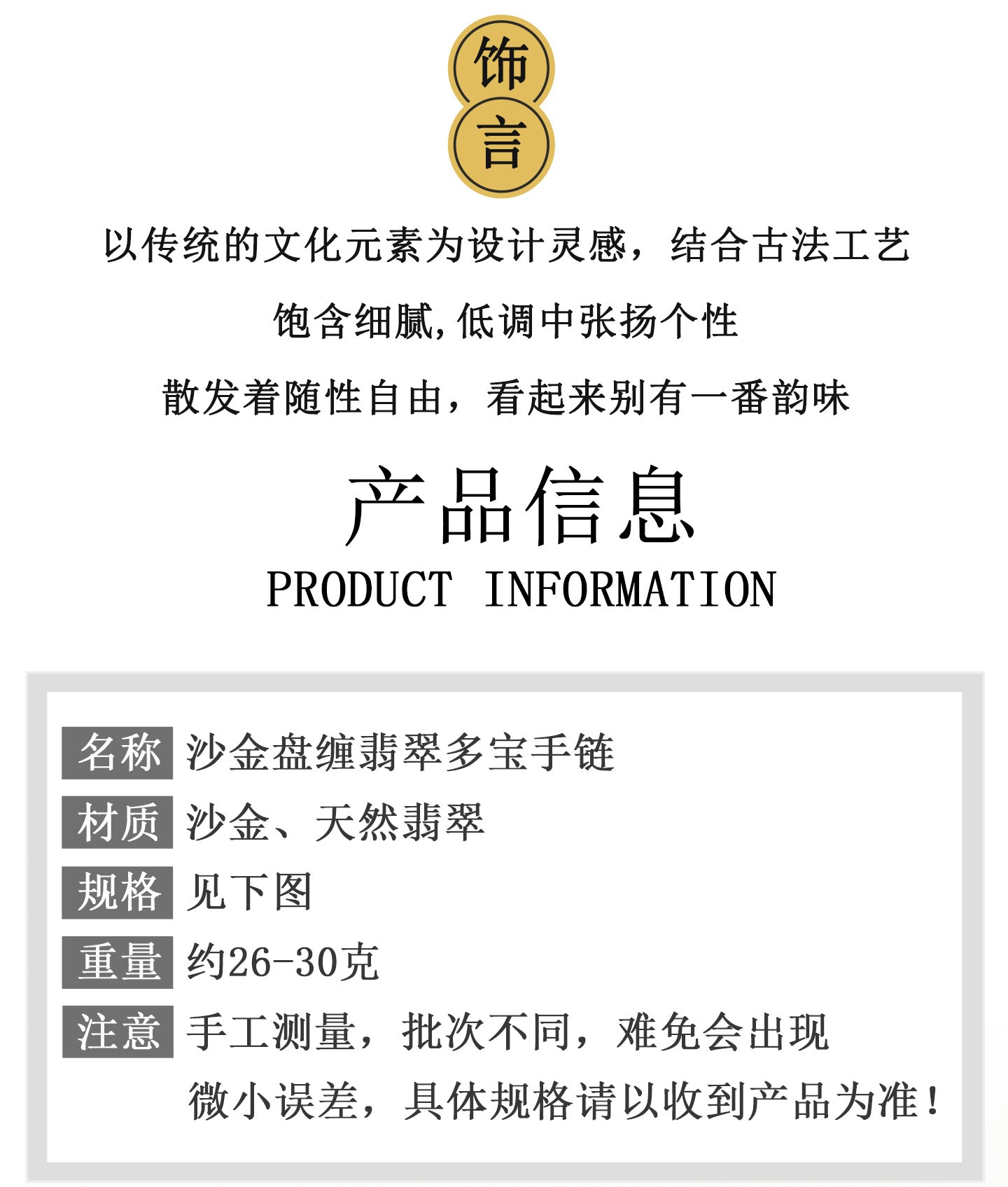 From a feng shui perspective, gold attracts wealth and success, while jade wards off misfortune. Worn on the left wrist, it draws in auspicious chi (energy); on the right, it dispels stagnation. The retro cultural elements pay homage to ancient artisans who believed that such adornments could influence one's destiny. As the old saying goes, "Jade in hand, fortune in land," this piece is not merely an accessory but a talisman for those seeking to harmonize their environment and inner world.