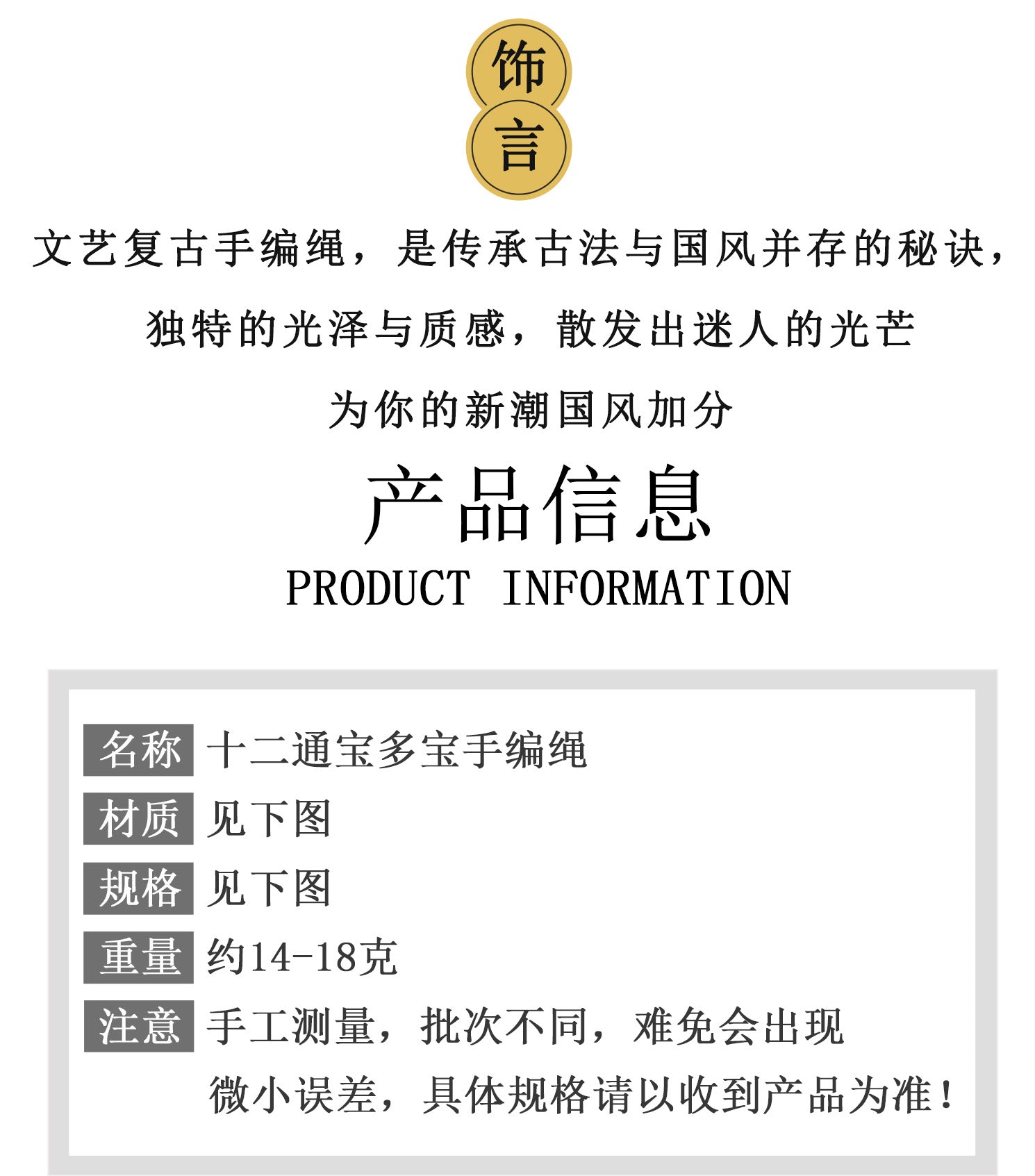 In Taoist philosophy, the concept of wu wei—effortless action—emphasizes flowing with the natural order. Wearing this bracelet is akin to embracing that flow; the hand-knitted rope, adjustable and soft, allows for a personalized fit that moves with you, symbolizing adaptability in life's journey. As the Tao Te Jing says: