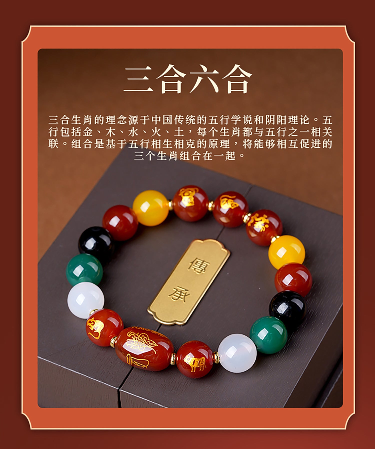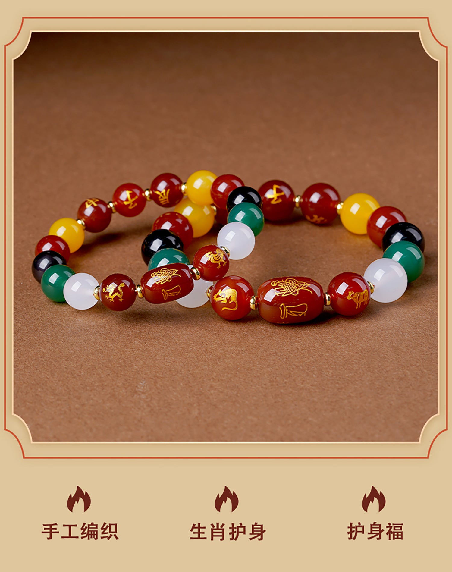 This bracelet captures that eternal truth, with agate stones representing the earth element—a foundation of stability and nourishment. Each zodiac sign engraved upon it aligns with the celestial forces, guiding the wearer's path toward harmony and fulfillment. The design, blending the twelve animals of the Chinese zodiac with the five elements (gold, wood, water, fire, earth), creates a microcosm of the universe, where personal destiny and cosmic order converge.