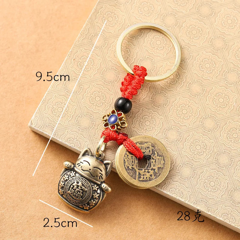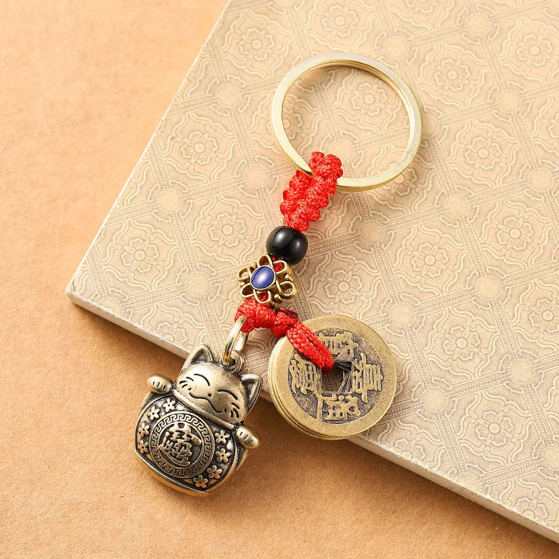 在传统风水中,五帝钱代表着镇宅化煞、招财引福;而源于港岛与东亚街市的招财猫,则寓意招来贵人与生意气。将两者结合于一枚精制钥匙扣,中和了路途与财运的流转。