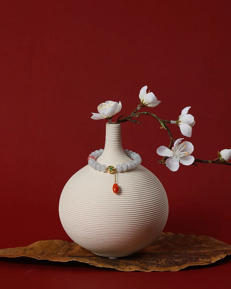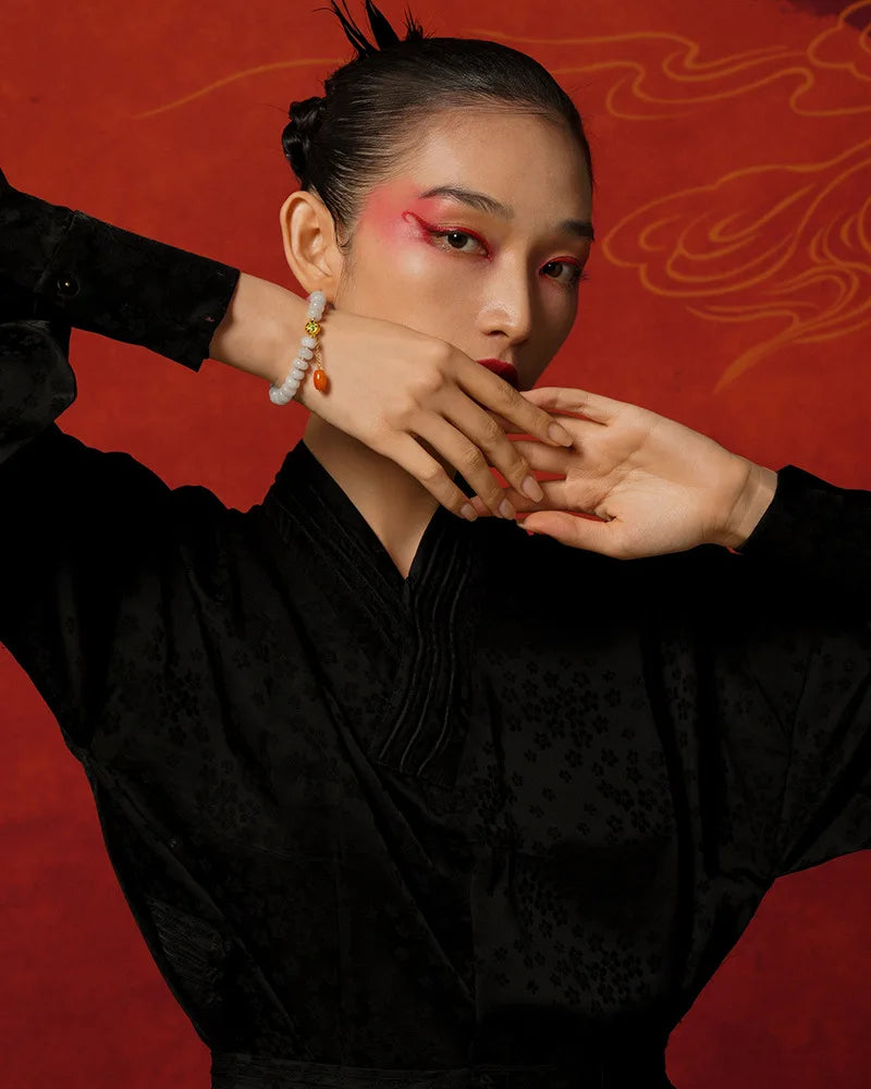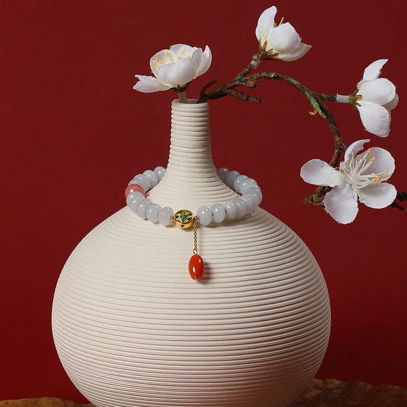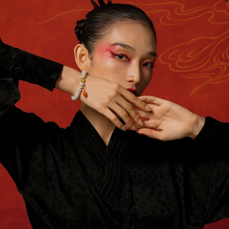 In the spirit of the classics, the combination mirrors the teaching “一阴一阳之谓道”: light and shade, tenderness and resolve, green life and warm red, together form a balanced whole. Emerald's verdant hue evokes spring's renewal and inner clarity; as the I Ching teaches, “天行健,君子以自强不息” — the heavens move, the noble person strives without ceasing. Wear the green beads as a reminder to cultivate clarity and steady growth.